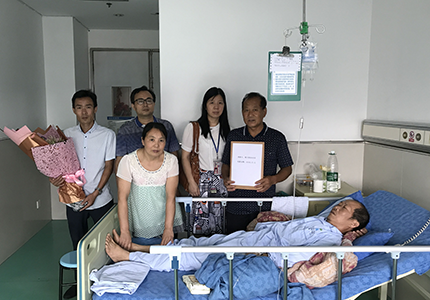 6月13日上午,棟方股份人事行政中心副總監(jiān)周金桃、工會委員會主席李亨波及生產(chǎn)運營中心龔冠男一行前往嚴安喜治療所在醫(yī)院進行慰問。當我們將募捐款項送到嚴安喜家人手中時,他們激動不已,再三致謝,感恩企業(yè)對嚴安喜的關(guān)心與幫助。工會主席李亨波鼓勵嚴安喜要堅強、積極、勇敢地面對疾病,樹立起戰(zhàn)勝疾病的信心,爭取早日擺脫病痛、恢復健康,并轉(zhuǎn)達了棟方股份全體員工對嚴安喜及其家屬的鼓勵。