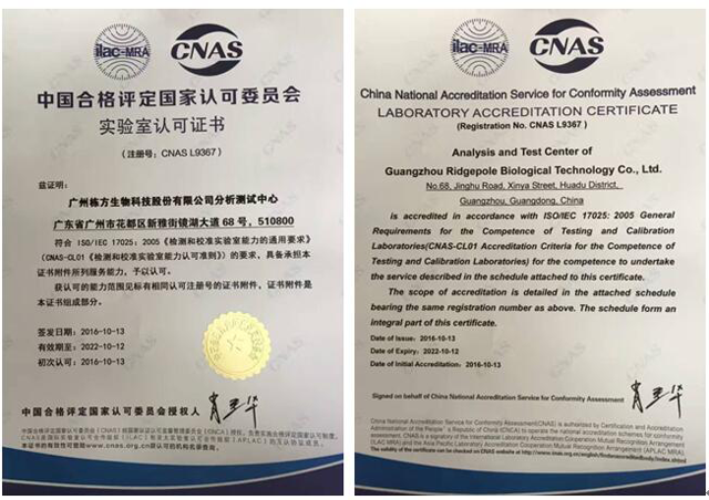 2016年棟方股份分析檢測中心首獲CNAS認證