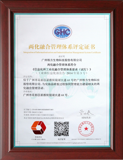 5月8日,棟方股份兩化融合管理體系順利通過(guò)專(zhuān)家組審核,獲得頒發(fā)兩化融合管理體系評(píng)定證書(shū),成為率先通過(guò)該體系評(píng)估審核的化妝品研發(fā)制造企業(yè)。棟方股份成功實(shí)現(xiàn)兩化融合,企業(yè)競(jìng)爭(zhēng)力將會(huì)得到進(jìn)一步的提升,在管理水平和工作效率方面得到明顯改善,必會(huì)更好服務(wù)于客戶和市場(chǎng)。