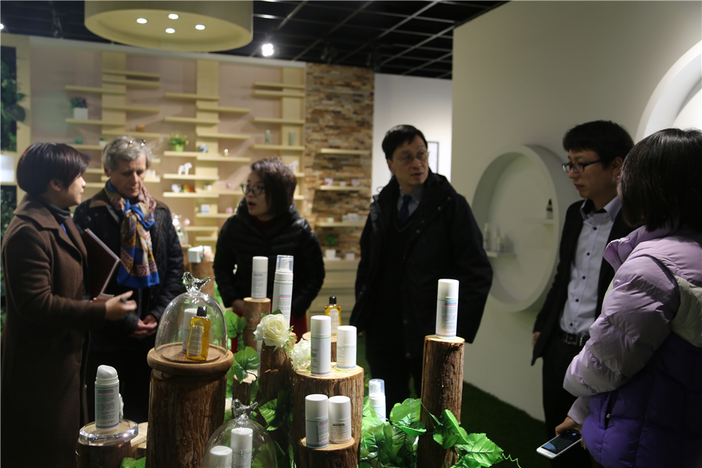 On the afternoon of March 11th, President of the international cosmetic chemist's Association (IFSCC), President of the international cosmetics division of Claudie, the rate of the group of experts to visit the house to visit the exchange of shares. Wang Li, director of the business center of the building side of the business center, Song Zhe, director of brand center, etc., and with the experts to carry out a discussion meeting.